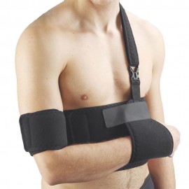 Das spezielle, mit Frottee umhüllte, Schwamm-Material dieser orthopädischen Armschlinge sorgt für maximalen Tragekomfort bei der Aufgabe, Schulter und Arm ruhig zu stellen. Die Klettstreifen vorne ermöglichen es Ihnen jederzeit Anpassungen vorzunehmen. Einheitsgröße.