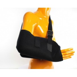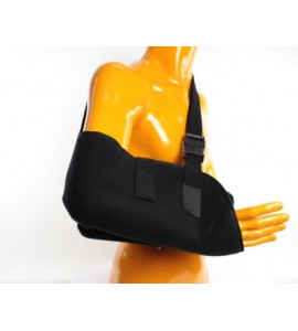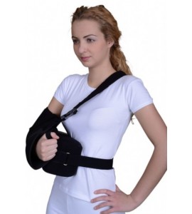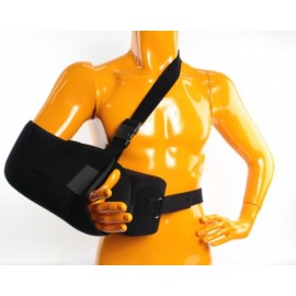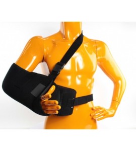 Orthopädische Armfixierung aus speziellem 'Auraterry' Schwamm-Material, stellt diese Fixierung die Ruhigstellung der Schulter und des Armes bei 30 Grad sicher, um die Bildung von Adhäsionen und Drücken des subacromialen Bereiches zu verhindern. Die Bandage wird bei der postoperativen Ruhigstellung der Schulter nach Rotatorenmanschetten und habituellen Luxationen und Subluxationen verwendet.