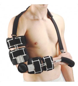 Diese Ellenbogenorthese ist anatomisch an die Form des Ellenbogens angepasst. Hergestellt aus einer Frottee-Innenbeschichtung. Die Winkeleinstellung kann einfach durch Drücken einer Taste erfolgen. Die Orthese ermöglicht eine kontrollierte Flexion und Extension des Ellenbogens. Die Aluminiumstütze ermöglicht die Anpassung an die Länge und verhindert das umknicken des Handgelenks. Schultergurt bietet Komfort beim Gebrauch.