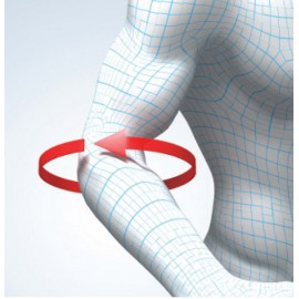 Orthopädische Epicondylitis-Unterstützung aus atmungsaktivem elastischem Gewebe hergestellt und anatomisch geformt. Der Stoff Auradynamic ist elastisch und schweißmindernd. Er ist in drei Ebenen gegliedert: zwei sorgen für Kompression und eine, die mit karirerter Textur hergestellt ist, hat eine Massagefunktion und ist mit rutschfesten Silikonbändern ausgestattet. Durch die, mit leichten Noppen ausgestatteten Silikonpads kommt es zu einem Massageeffekt und es wird sichergestellt, dass die Kompression auf die Muskelgruppen anhaltend auf beiden Seiten des Ellenbogen wirkt. Lokale Kompression reduziert die Spannung der Sehne und somit den Schmerz.