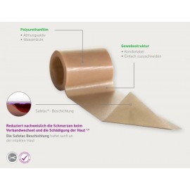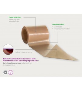 Mepitac kann ohne Verlust der Klebeeigenschaften angehoben und neu positioniert werden. Dank Safetac® Technologie minimiert Mepitac Schmerzen beim Entfernen des Verbandes.