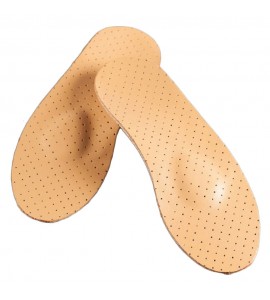 Einlegesohlen aus speziellem thermoplastischen Material mit Längs- und Mittelfußunterstützung mit Leder bezogen. Verteilt das Körpergewicht gleichmäßig und reduziert die Belastung der Gelenke.
