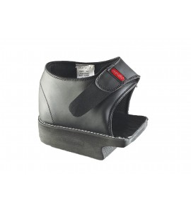 Dieser spezielle postoperative Schuh, der mit einer gummierten Schicht und einem Lederbezug ausgestattet ist, sorgt für Fixierung und beschleunigt die Reduktion des Ödems.