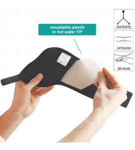 Handgelenksschiene 'De Quervain' aus Neopren mit anatomischer Form. Diese Schiene ist mit speziellem thermoplastischem Material ausgestattet, das unter heißem Wasser formbar wird. Hilft, schmerzende Muskeln und Gelenke zu entlasten.