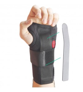 Standard orthopädische Handgelenksschiene aus Neopren. Die anatomisch geformte Aluminiumunterstützung immobilisiert das Handgelenk in einer neutralen Position. Der Verband bietet zusätzliche Stabilisierung um das Handgelenk. Die Größe ist standard und regulierbar.