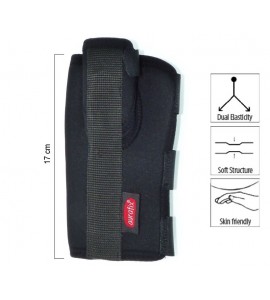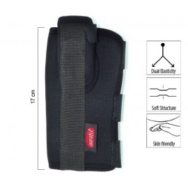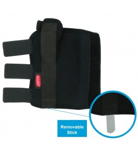 Handgelenkschiene 'De Quervain' aus Neopren, anatomisch geformt und mit einem speziell modifizierten Aluminium-Struktur. Diese Schiene reduziert die Bewegungen des Daumens. Die Klettverschlüsse sorgen für mehr Komfort, während das Neopren Körperwärme speichert, die Durchblutung anregt und die Heilung dadurch beschleunigt.