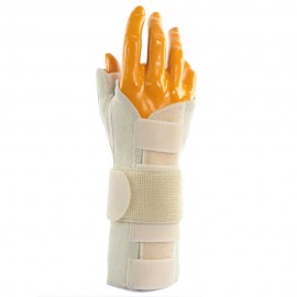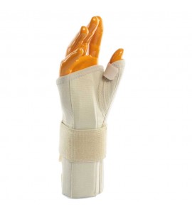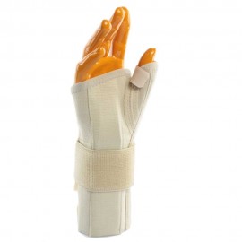 Diese Unterstützung für Handgelenk und Daumen ist zur Stabilisierung des Daumengelenks und zum Stützen entwickelt. Für De Quervain-Syndrome und bei Problemen der Daumenbänder geeignet. Hergestellt aus 80% elastischem und atmungsaktivem Baumwollgewebe mit Klettverschluss. Dank der inneren Aluminium-Stütze ist die Position des Daumens verstellbar. Die Stütze kann zum Waschen herausgenommen werden, um die Metallteile nicht zu schädigen.