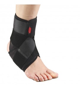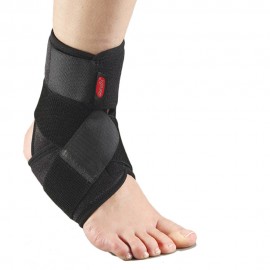 Sprunggelenkbandage aus Neopren. Es unterstützt den Knöchel und reduziert so Schmerzen. Das elastische Band in Form einer acht gewickelt bietet eine zusätzliche Stabilisierung und Kompression. Die Größe kann vom Patienten eingestellt werden. Einheitsgröße.
