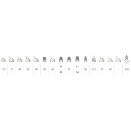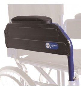 Klappbare und abnehmbare Armlehnen. Erhältlich in Sitzflächenbreite 40 und 43 cm mit einem maximalen Abstand von 9,5 cm zwischen Sitzfläche und Rädern.