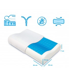 Diese Art von Kissen hat viele Gemeinsamkeiten mit klassischen viskoelastischen Kissen. Das Produkt hat im Gegensatz dazu eine eingebaute Gelschicht, um dem Halsbereich Frische zu geben.