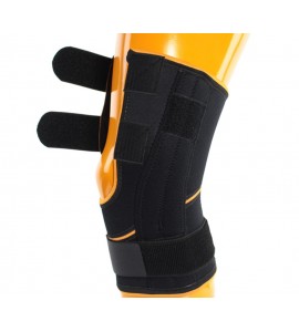 Orthopädischer Knieschützer aus Neopren, anatomisch geformt. Aluminiumverbindungen auf beiden Seiten bieten maximale Unterstützung, ermöglichen kontrollierte Bewegungen und verhindern die Überstreckung des Knies. Der Knieschützer bietet eine gute Stabilisierung und ein geringes Gewicht am Knie. Geeignet für Rehabilitation, nach Operationen und schwere Knie-Läsionen.