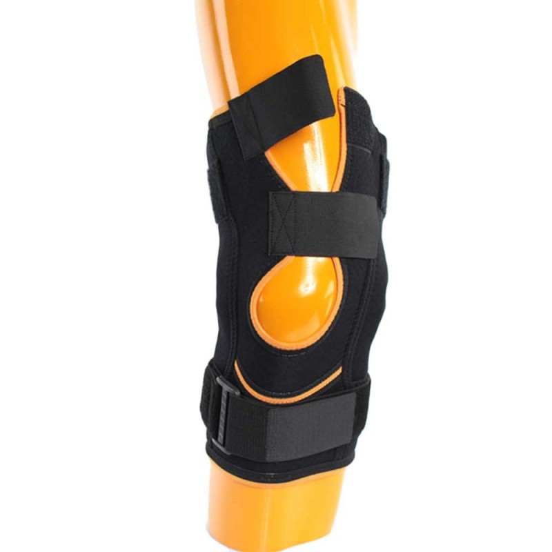 Kniegelenkorthese aus weichem Schaumstoff mit innerem Frotteeüberzug. Diese Orthese ist mit einer abnehmbaren Aluminiumstangen versehen, die die Erweiterung und Stabilisierung der Rückseite im‚ medialen und der lateralen Seiten sicherstellt. Diese Kniefixierung‚ wird besonders bei Verletzungen des Kniegelenkes und bei der postoperativen Betreuung eingesetzt. Diese Orthese hält das Knie in einer 20° Position.