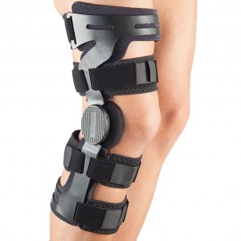 Verstellbarer Knieschützer aus leichtem anatomisch geformtem Aluminium. Der Knieschützer erlaubt Dehnungs- und Flexionsbeschränkungen. Flexionswinkel und Erweiterungswinkel können eingestellt werden. Bietet eine komfortablere Stabilisierung, verhindert Verschiebung des Schienbeins und Hyperextension des Knies.