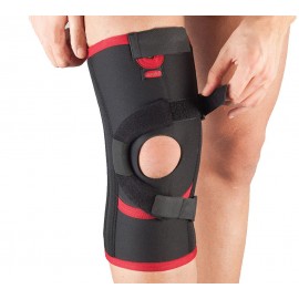 Orthopädischer Knieschützer aus Neopren, anatomisch geformt. Verbessert die Stabilisierung der Kniescheibe bei lateraler Subluxation und Patellaluxation. Mit leichtem Druck hilft er die Kniescheibe auszurichten. Die inneren und äußeren Stützen ermöglichen die allgemeine Gelenkstabilität des Knies.