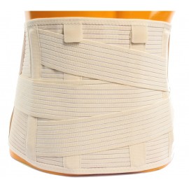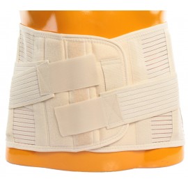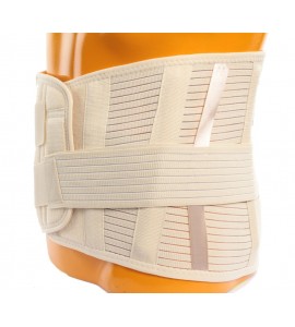 Abdominal Korsett aus flexiblem, atmungsaktivem und schweißminderndem Baumwollgewebe. Die Höhe des Korsetts beträgt hinten 26 cm und vorne 18 cm. Das Produkt beinhaltet 4 Stützen (2 abnehmbar und 2 fest) und diagonale Bänder, welche für eine bessere Unterstützung des Lendenbereichs sorgen. Die vordere Platte ermöglicht die Befestigung des Klettverschlusses auf einer größeren Oberfläche für eine bessere Passform. Die Haut wird durch eine zusätzliche Polsterung vor den Stützen geschützt.
