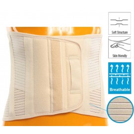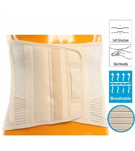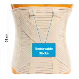 Abdominal Zaun-Korsett aus flexiblem, atmungsaktivem Gewebe. Für Lumbalprobleme, unausgeglichene Haltungsmuskeln, Bandsprobleme, Osteochondrose, Spondylose und chronischen Rückenschmerzen geeignet. Mit 4 Stützen ausgestattet (2 herausnehmbar und 2 nicht herausnehmbar). Die diagonalen Bänder bieten eine bessere Unterstützung der Lendelwirbelsäule und die Bänder vorne ermöglichen die Fixierung des Klettverschlusses auf einer größeren Oberfläche zur besseren Passform. Hinterhöhe: 32 cm. Vorderhöhe: 21 cm.