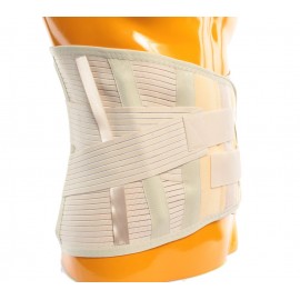 Abdominal Korsett hergestellt aus flexiblem, atmungsaktivem und schweißhemmendem Baumwollgewebe. Höhe des Korsetts: 32 cm. Beinhaltet 2 Kunststoffstützen innen (vorne) und 4 weitere Stahlstützen auf der Rückseite positioniert an beiden Seiten der Wirbelsäule. Verstellbare Riemen sorgen für eine zusätzliche Stabilisierung für den Lumbalbereich. Enthält Frotteepads für höchstmöglichen Tragekomfort.
