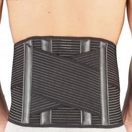 Lumbosakrales orthopädisches Korsett aus flexiblem, atmungsaktivem Baumwollgewebe um Schweiß zu verhindern. Höhe des Korsetts: 26 cm . Beinhaltet 2 Kunststoffstützen innen (vorne) und 4 weitere Stahlstützen auf der Rückseite positioniert an beiden Seiten der Wirbelsäule. Verstellbare Riemen sorgen für eine zusätzliche Stabilisierung für den Lumbal-Bereich. Enthält Frotteepads für höchstmöglichen Tragekomfort.