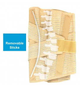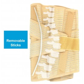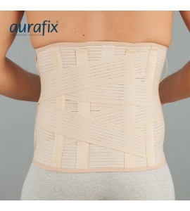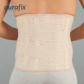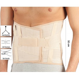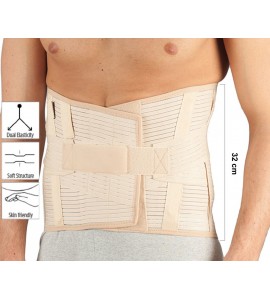 Höhe des Korsetts: 32 cm. Beinhaltet 4 Kunststoffstützen innen (2 an der Vorder-, 2 an der Rückseite) und 2 weitere, abnehmbare Stahlstützen auf der Rückseite auf beiden Seiten der Wirbelsäule. Verstellbare Riemen sorgen für eine zusätzliche Stabilisierung für den Lumbalbereich.