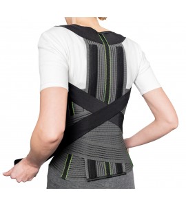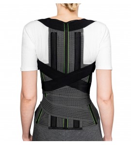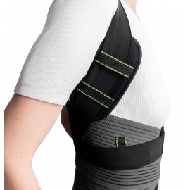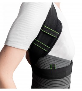 Das System der seitlichen Spanngurte erleichtert das Anziehen und sorgt für eine stärkere Kompression, die für eine wirksame Stabilisierung und Schmerzlinderung unerlässlich ist. Dank ihres modularen Aufbaus bietet die Orthese eine vollständige Unterstützung. Die zusätzlich verwendeten Sicherheitsgurte reduzieren den Druck unter den Armen und sorgen für maximalen Tragekomfort.