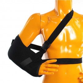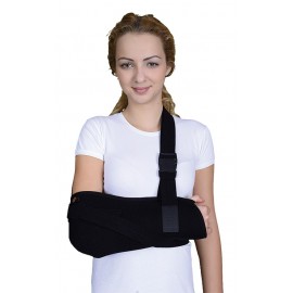 Bandage zur Immobilisierung der Schulter und des Oberarms, auch im Fall von Schulterdislokationen geeignet. Das Produkt ist innen aus frischem Schwamm und außen aus klettempfindlichem Stoff und ist mit einem zusätzlichen Band dazu ausgestattet, das an der Brust befestigt werden kann und eine optimale Anpassung ermöglicht.