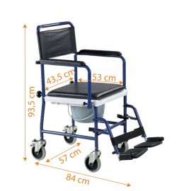 Die Fahrbarkeit mittels der vier Rollen - zwei davon mit Bremse - ermöglichen zum einen das leichte Bewegen des Toilettenstuhls, zum anderen kann der Anwender auf dem Toilettenstuhl im Haus bewegt werden, so dass ein zusätzlicher Einsatz eines Rollstuhls entfällt.