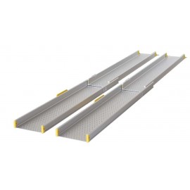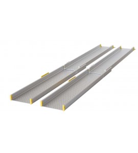 Aluminium Premium Teleskop-Rampe. Faltbare Teleskop-Alurampe für barrierefreien Zugang. Rutschfeste Oberfläche. Der Schutzrand verhindert seitliches Abkommen von der rutschfesten Fahrfläche. Praktisch auch zum Verladen von Mototrrädern, Rasenmähern, Motorollern, Baumaschinen etc...